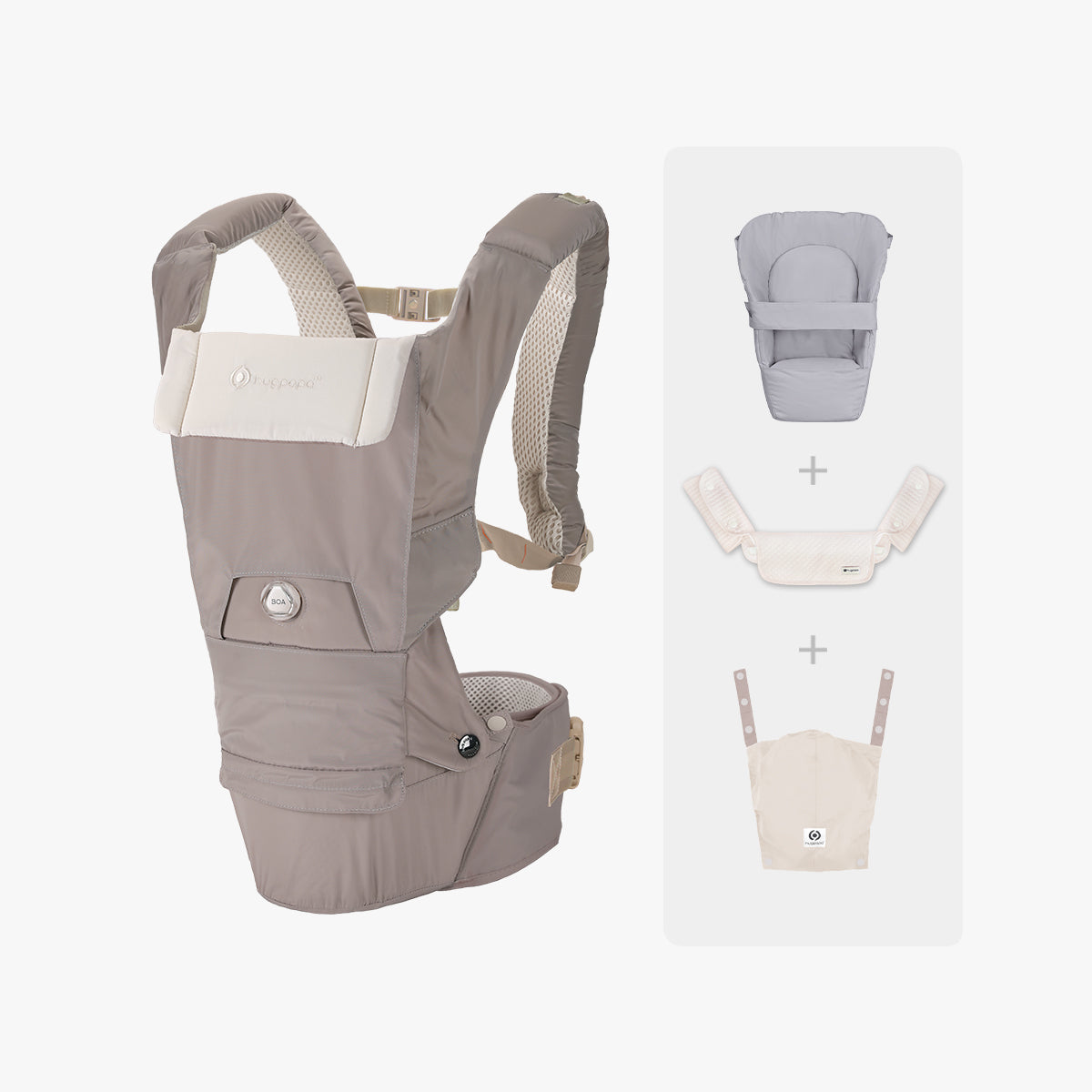 [Newborn Gift Set] Dial-Fit PRO Baby Carrier - Taupe Ivory & Drool Bib & Infant Insert
